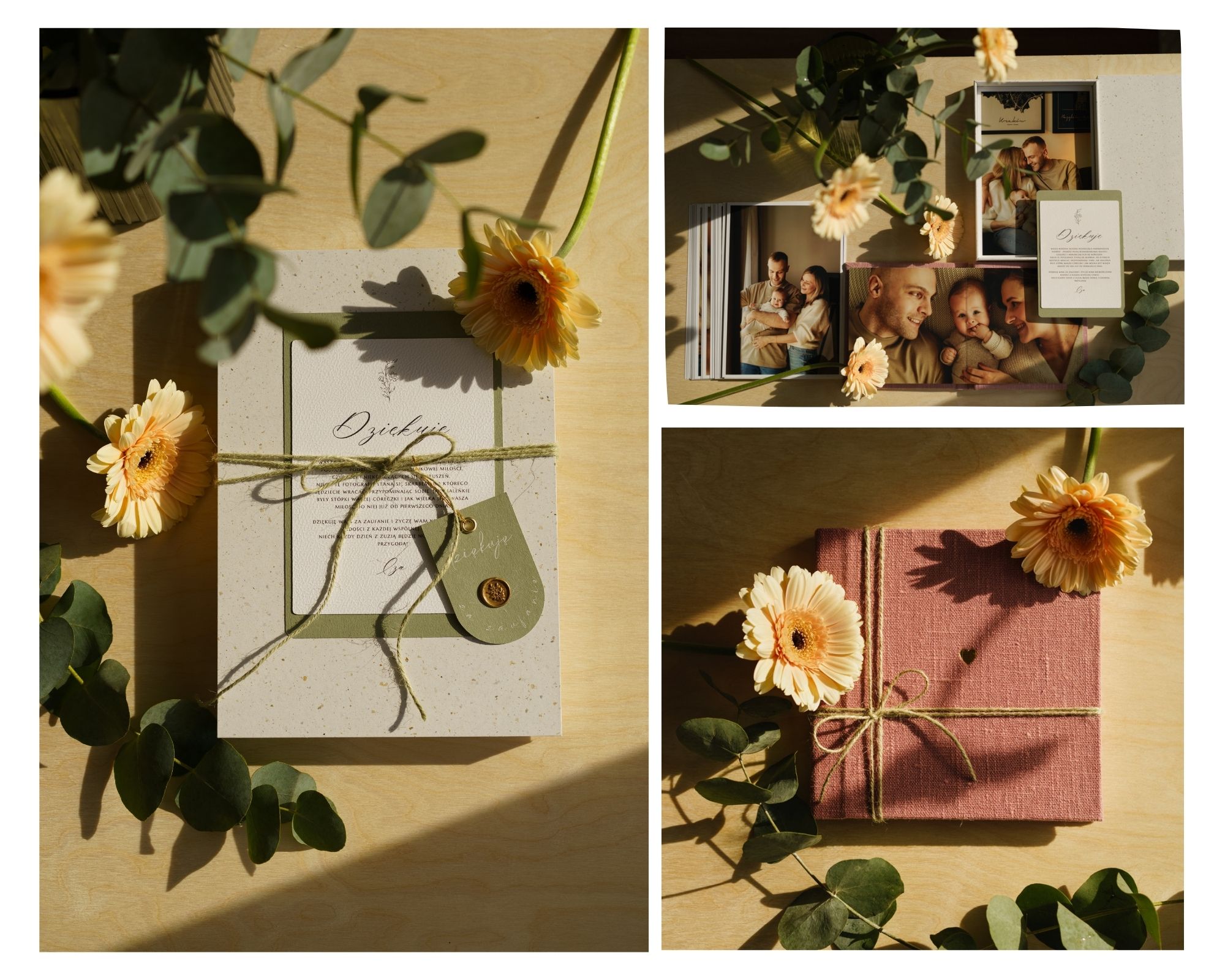 Wybierając pakiet z albumem, zyskujecie trwałą, wysokiej jakości pamiątkę, która przez lata będzie piękną rodzinną kolekcją wspomnień.